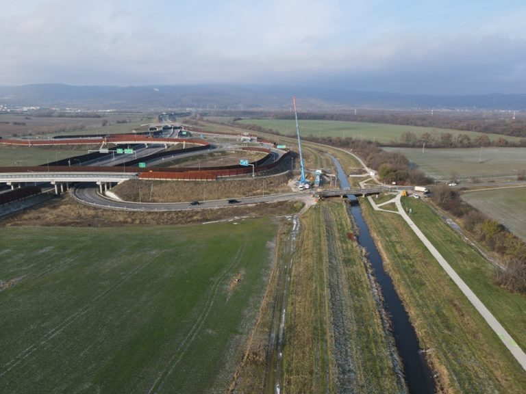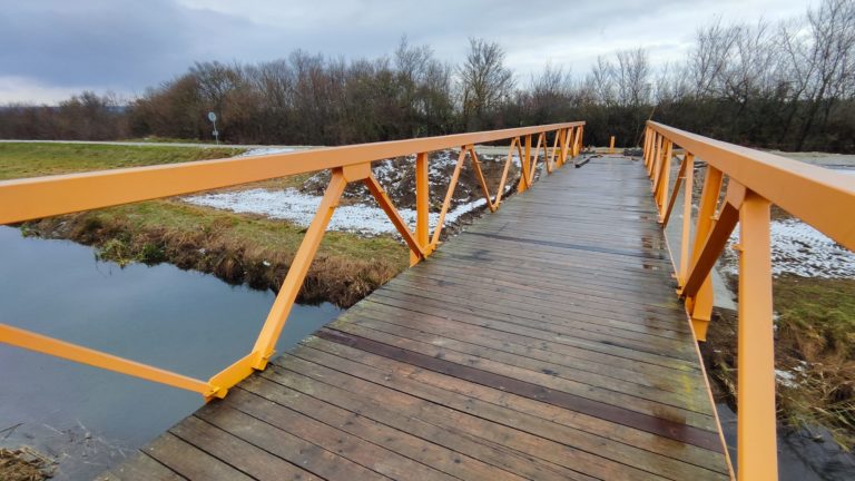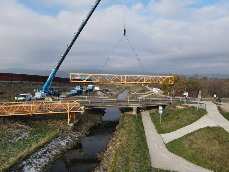 Cyklolávka nad Šúrskym kanálom, ktorá spája Vajnory s cyklotrasou Jurava. Brattislava, 8. december 2023. Foto: SITA/Bratislavský samosprávny kraj.