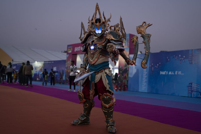 Cosplayer oblečený ako Martis prišiel na Delhi comic con, ktorý sa koná v indickom hlavnom meste Naí Dillí. Foto: SITA/AP.