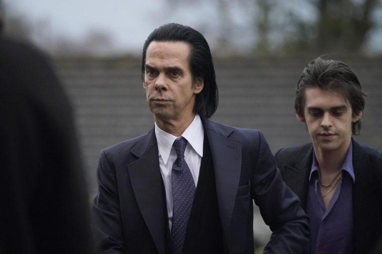 Spevák a textár Nick Cave prichádza na pohreb írskeho speváka a skladateľa Shane McGowana, ktorý zomrel vo veku 65 rokov. Foto: Niall Carson/PA via AP.