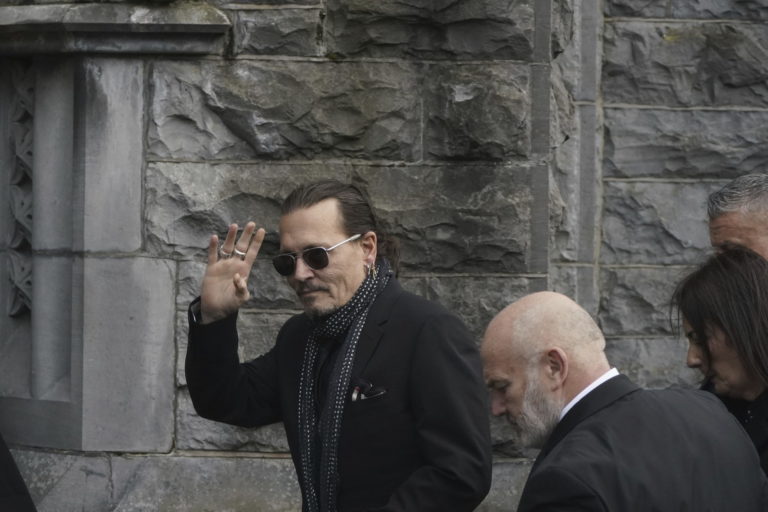 Herec Johnny Depp prichádza na pohreb írskeho speváka a skladateľa Shane McGowana, ktorý zomrel vo veku 65 rokov. Foto: Niall Carson/PA via AP.