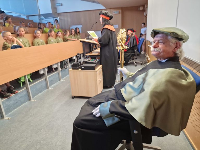 Slávnostná imatrikulácia 17. ročníka Prešovskej detskej univerzity (PDU) organizovanej počas letných prázdnin. Témou tohtoročnej PDU je "Keď ťa kopne múza" a zúčastní sa jej celkovo 239 detí. Prešov, 8. júla 2024. SITA/Ivan Kriššák