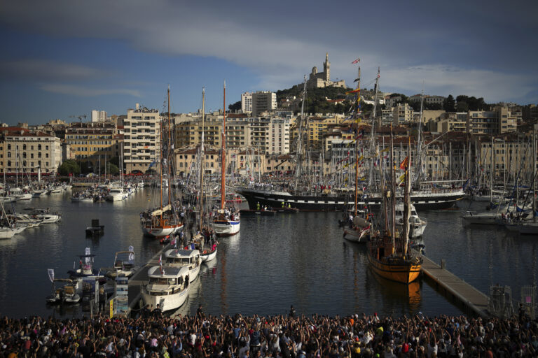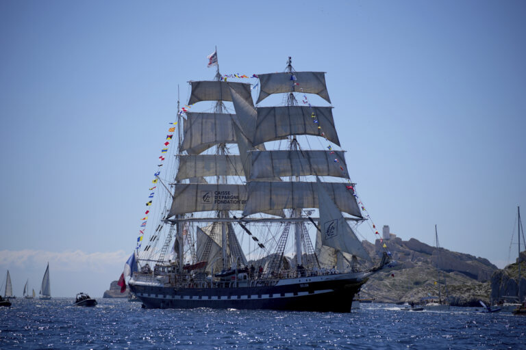 Belem, trojsťažňová plachetnica, ktorá nesie olympijský oheň z Grécka do Francúzska. Foto: SITA/AP