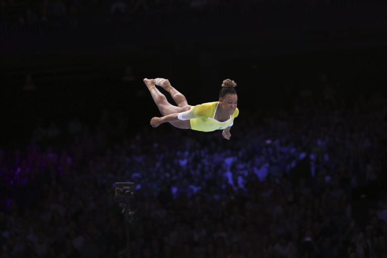 Brazílčanka Rebeca Andrade na Majstrovstvách sveta v športovej gymnastike v Antwerpách. Foto: SITA/AP.