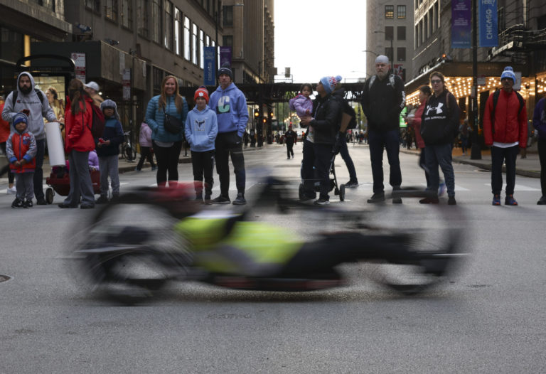 Diváci a účastníci na 45. ročníku Chicagského maratónu. Foto: Trent Sprague /Chicago Tribune via AP.