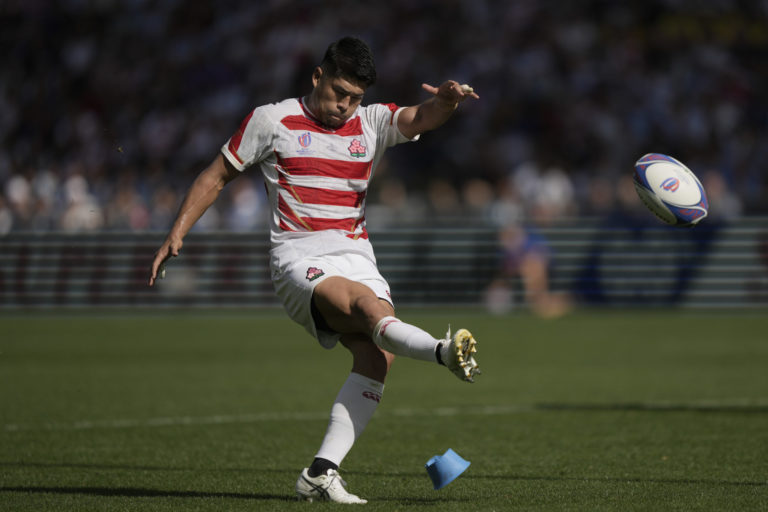 Japonec Rikiya Matsuda počas zápasu proti Argentíne na MS v rugby na štadióne Stade de la Beaujoire v Nantes. Foto: SITA/AP.
