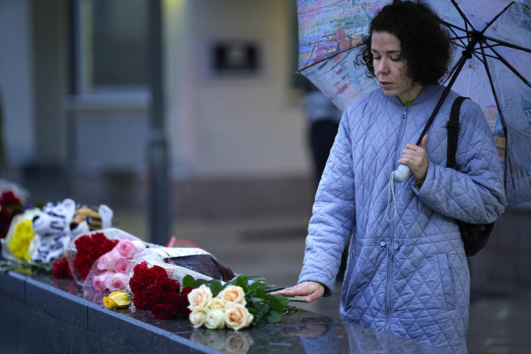 Kvety na pamiatky obetí útoku na Izrael pred izraelskou ambasádou v Moskve. Foto: SITA/AP.