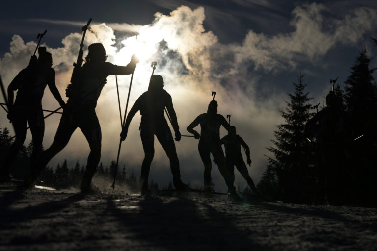 Biatlonistky súťažia v stíhacích pretekoch na 10 km počas Svetového pohára v biatlone v rakúskom Hochfilzene. Foto: SITA/AP.