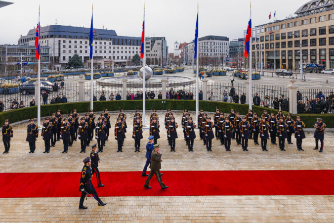 V popredí sprava: Generálmajor Martin Michalko a brigádny generál Martin Remeš počas rozlúčky s prezidentom SR v Prezidentskom paláci pri príležitosti odchodu generálov do výslužby. Bratislava, 10. december 2025. Foto: SITA/Kancelária prezidenta