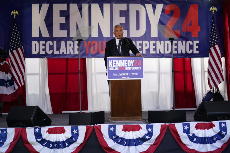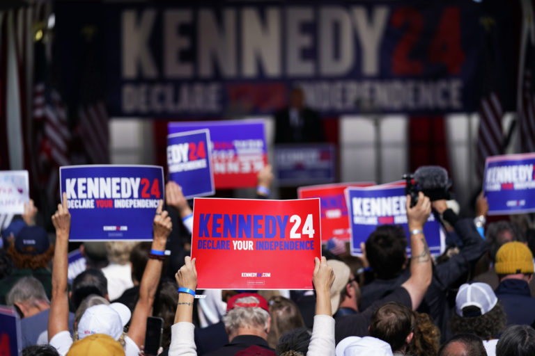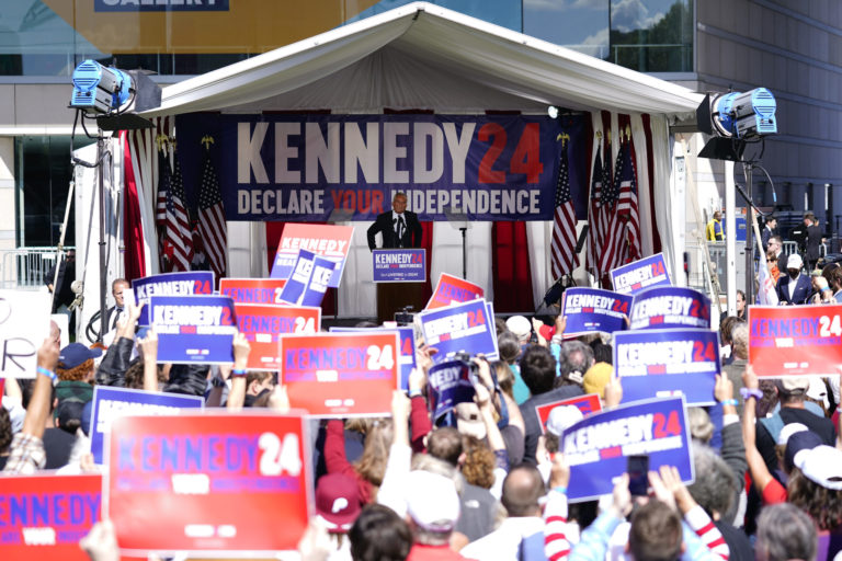 Kandidát na prezidenta Robert F. Kennedy, Jr. počas volebného mítingu vo Philadelphii. Foto: SITA/AP.