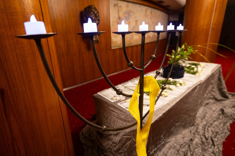 Atmosféra počas 15. ročníka spomienkového podujatia Čítanie mien obetí holokaustu pri príležitosti Pamätného dňa obetí holokaustu a rasového násilia v bratislavskom Divadle P. O. Hviezdoslava. Bratislava, 9. september 2024. Foto: SITA/Jana Birošová