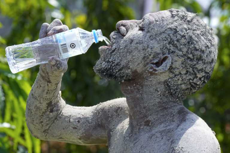 Bahenný muž z kmeňa Asaro pije vodu počas príhovoru pápeža Františka, ktorý navštívil Papuu Novú Guineu. Port Moresby, 9. september 2024. Foto: SITA/AP