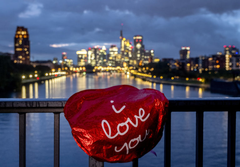 Sfúknutý balón pripevnený na zábradlí mosta nad nemeckou riekou Mohan. Frankfurt, 9. september 2024. Foto: SITA/AP