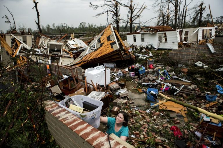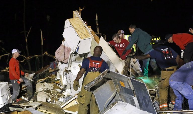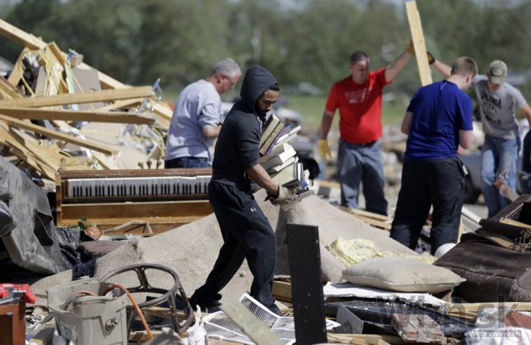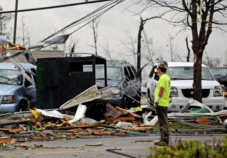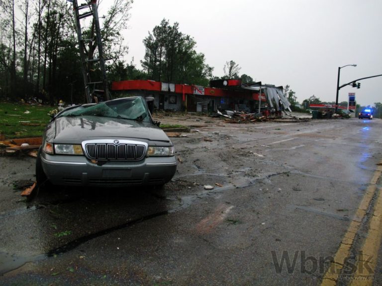 Spojené štáty už druhý deň sužujú ničivé tornáda. Od nedele si vyžiadali najmenej 21 obetí. Živel v nedeľu zasiahol najmä štáty Arkansas a Ohio, v pondelok pustošil v Mississippi v meste Tupelo, kde tornádo zničilo stovky budov, zhadzovalo drôty elektrického vedenia a stromy. Búrkový systém sa presunul v utorok do štátu Alabama. Z karavanového kempu neďaleko mesta Athens už hlásia prvé obete. Ohrozené sú aj časti štátov Georgia a Tennessee. Foto: SITA, AP