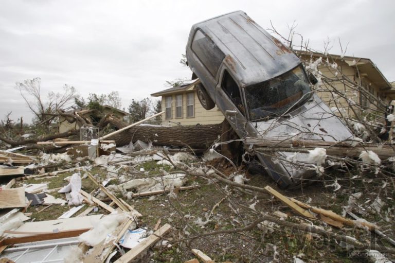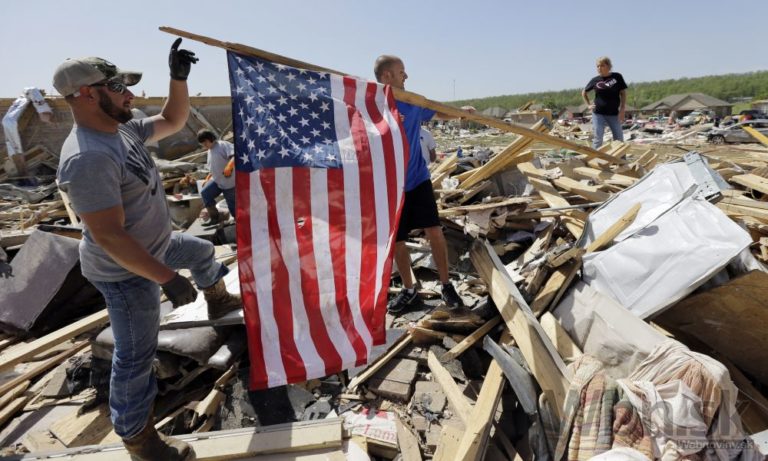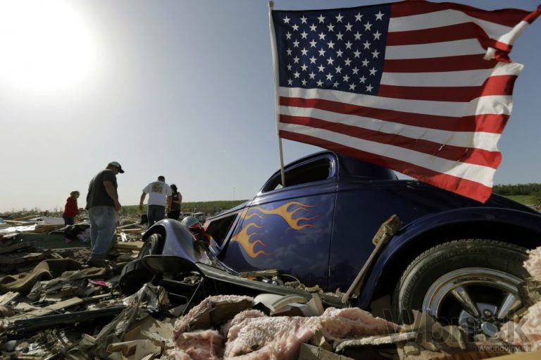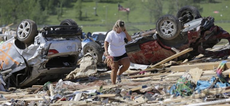 Spojenými štátmi sa v nedeľu prehnalo viacero tornád, ktoré v štátoch Arkansas a Oklahoma zabili najmenej siedmich ľudí. Prírodný živel si okrem obetí vyžiadal aj rozsiahle materiálne škody. Foto: SITA/AP