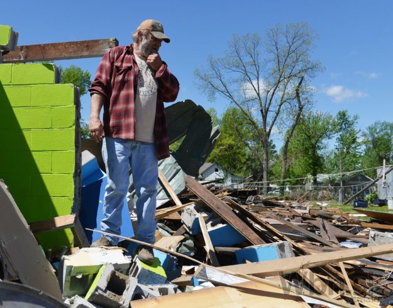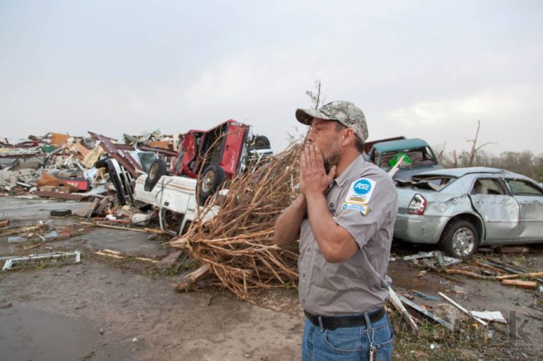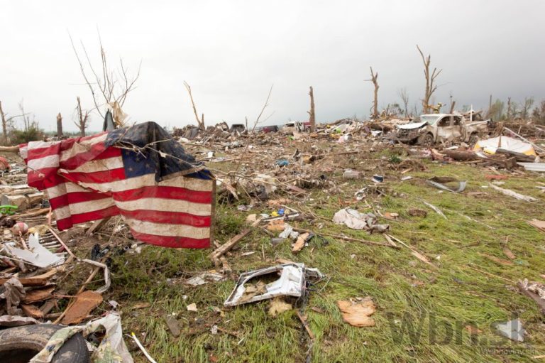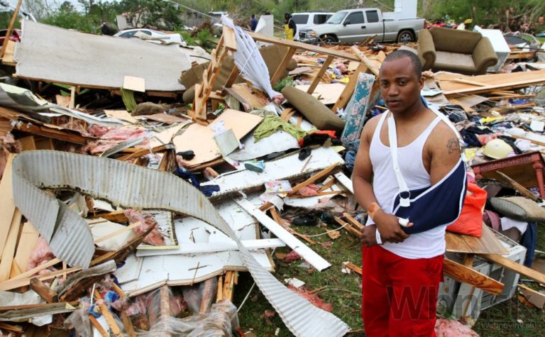 Spúšť po tornáde a búrkach v Tupele v Mississippi.