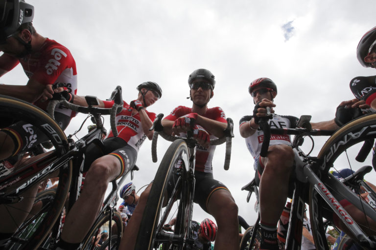 Cyklisti čakajú na začiatok 11. etapy Tour de France 2017. Foto: SITA/AP