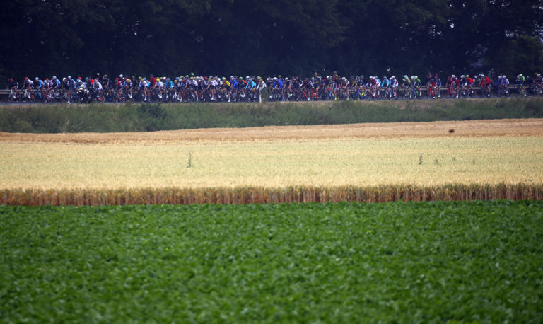 Cyklisti počas druhej etapy 104. ročníka Tour de France, ktorá viedla z Düsseldorfu do Liége. Foto: SITA/AP.