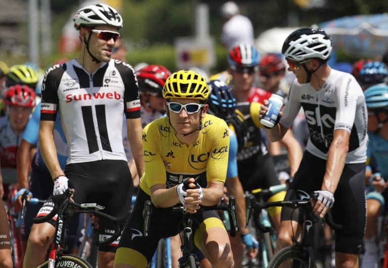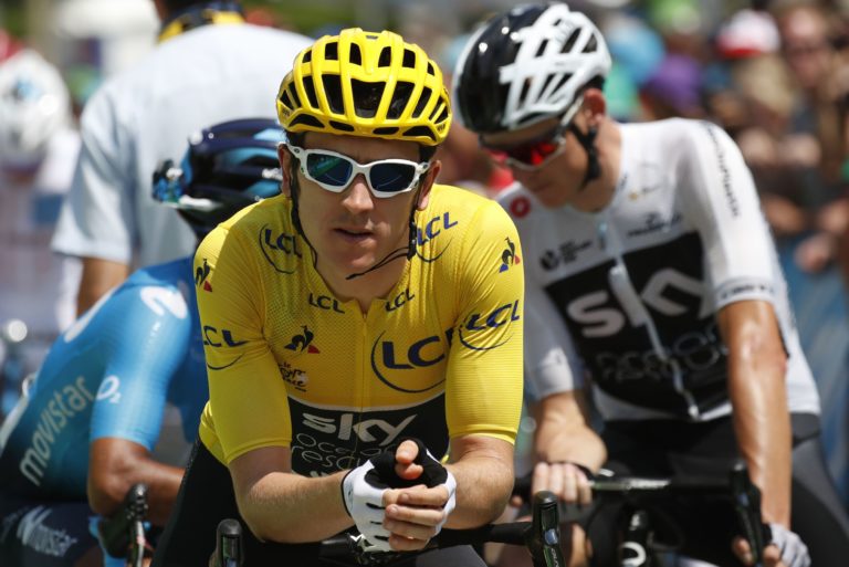 Brit Gerin Thomas v žltom drese pred štartom 17. etapy Tour de France. 25. júl 2018 Foto: SITA/AP