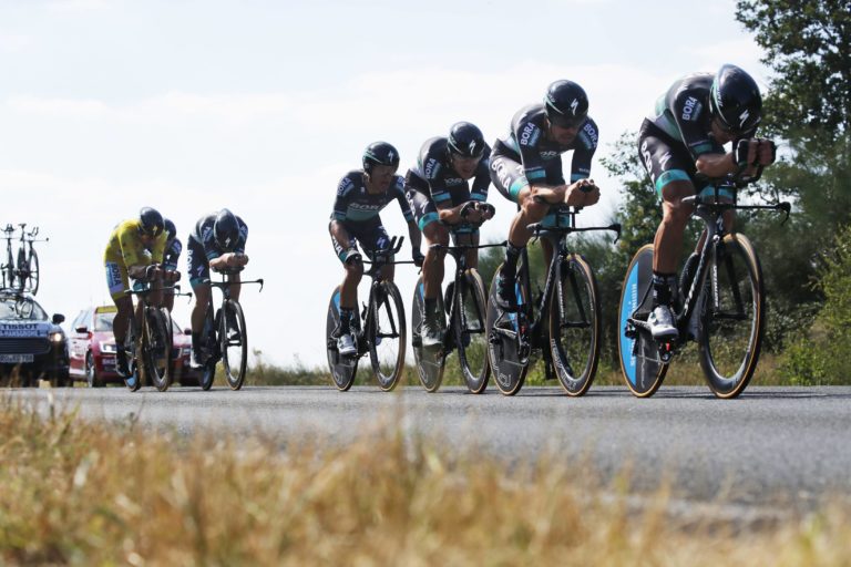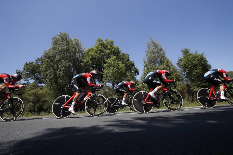 Časovku tímov na Tour de France 2018 vyhrali cyklisti BMC Racing. Foto: SITA/AP.