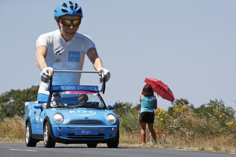 Karavána sponzorských vozidiel počas 3. etapy Tour de France 2018, ktorou bola časovka tímov na 35,5 km. Foto: SITA/AP.