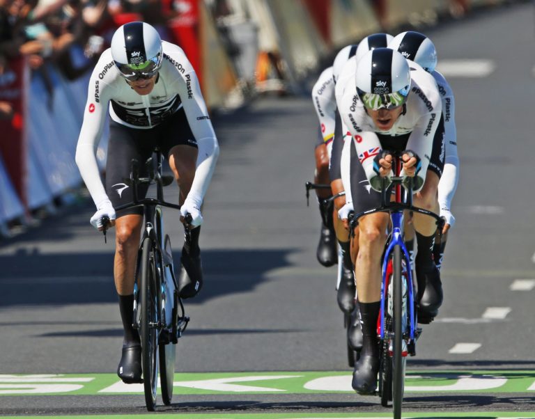 Brit Chris Froome zo Sky počas tretej etapy Tour de France 2018, ktorou bola časovka tímov na 35,5 km. Foto: SITA/AP.