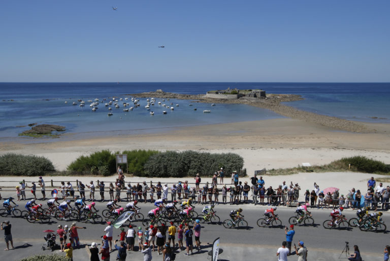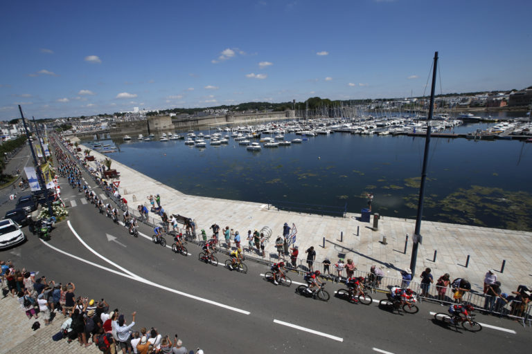 Cyklisti počas 5. etapy 105. ročníka Tour de France 2018 z Lorient dp Quimper (204,5 km). 11. júl 2018. Foto: SITA/AP.