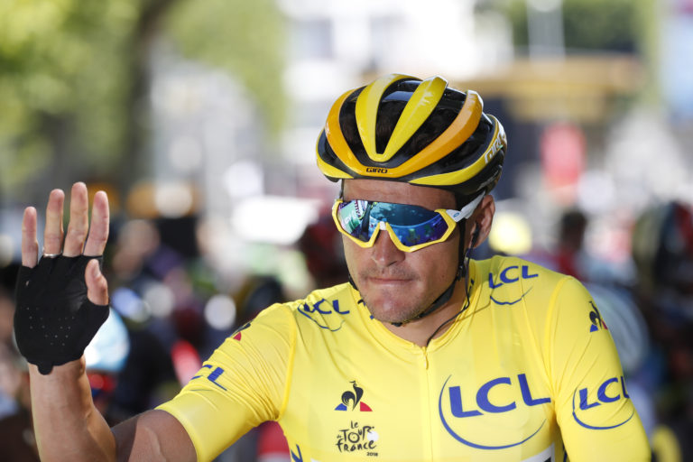 Belgičan Greg Van Avermaet v žltom drese lídra Tour de France pred štartom 5. etapy 105. ročníka z Lorient dp Quimper (204,5 km). 11. júl 2018. Foto: SITA/AP.