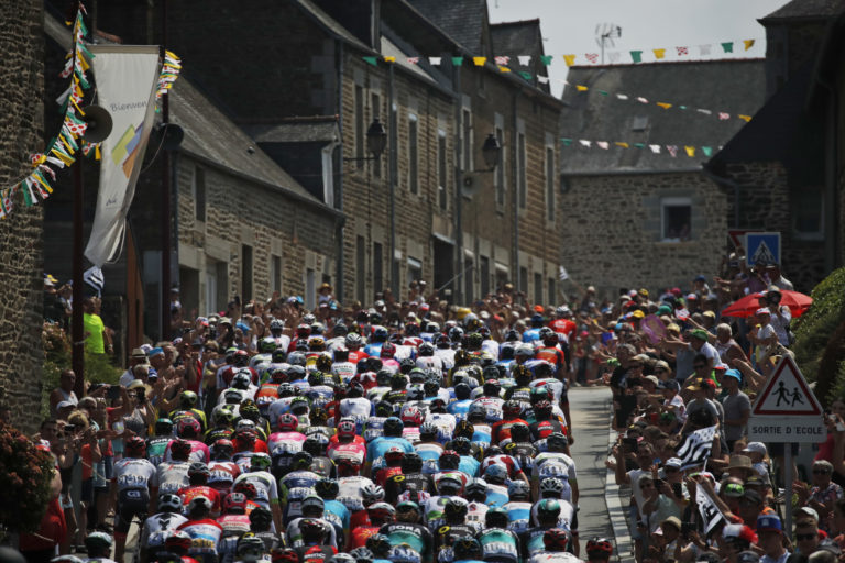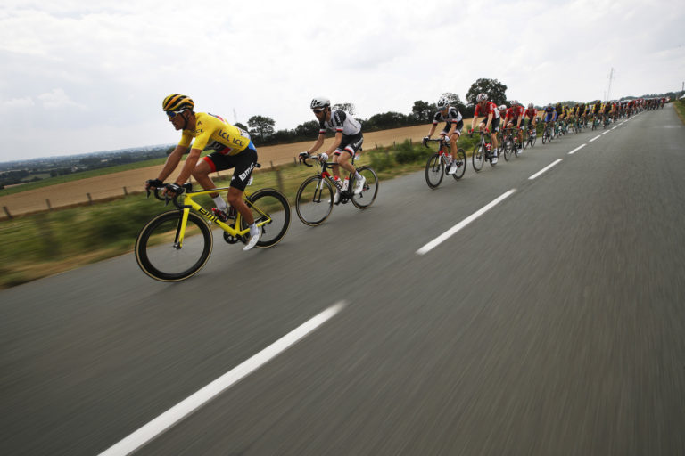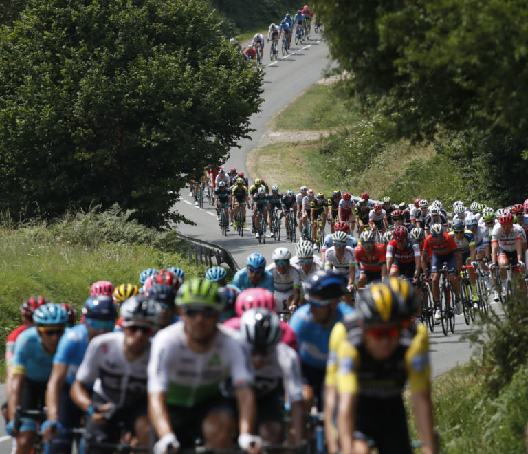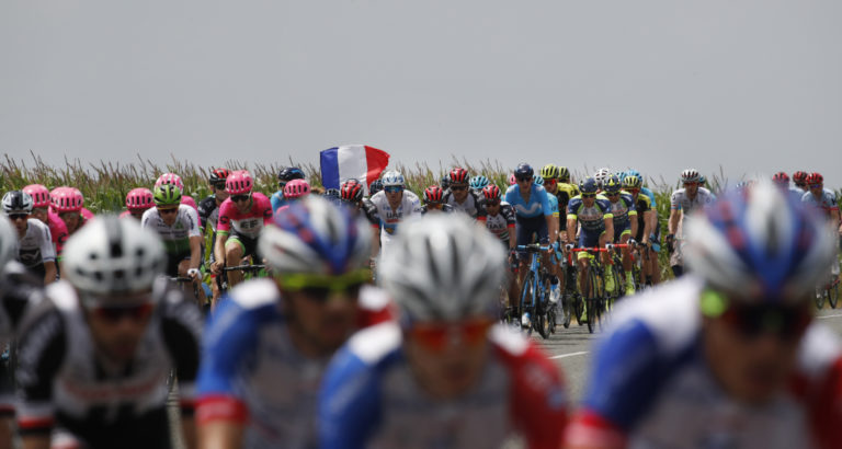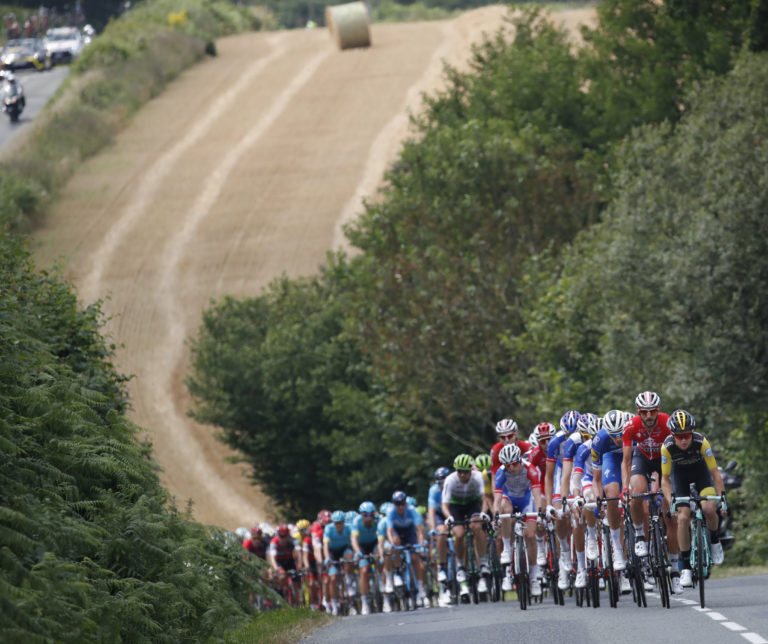 Horolezci počas siedmej etapy 105. ročníka Tour de France z Fougéres do Chartres (231 km). Foto: SITA/AP.