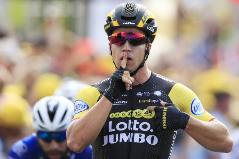 Holanďan Dylan Groenewegen sa teší z triumfu v siedmej etape 105. ročníka Tour de France z Fougéres do Chartres (231 km). Foto: SITA/AP.