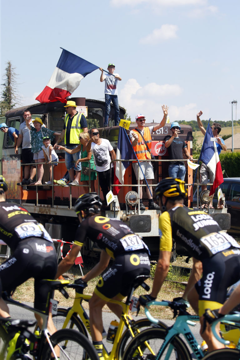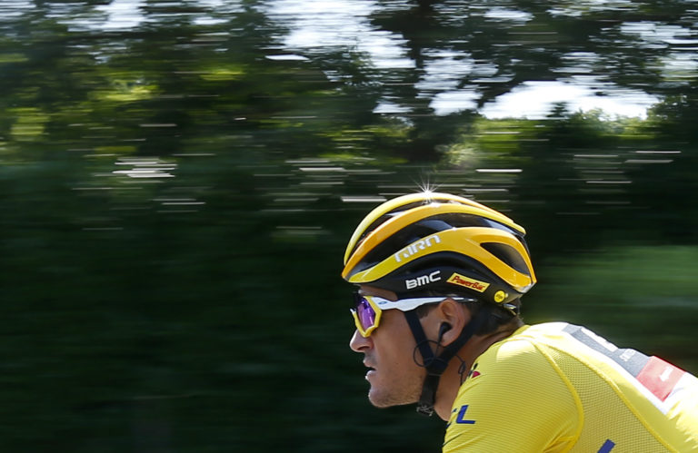 Belgičan Greg van Avermaet v žltom drese lídra počas 8. etapy 105. ročníka Tour de France z Dreux do Amiens (181 km). Foto: SITA/AP.
