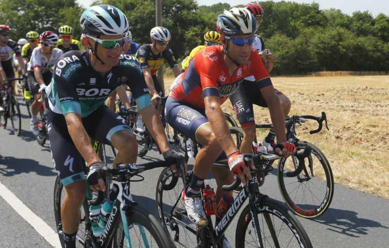 Talian Vincenzo Nibali a poľský cyklista Rafal Majka počas 8. etapy 105. ročníka Tour de France z Dreux do Amiens (181 km). Foto: SITA/AP.