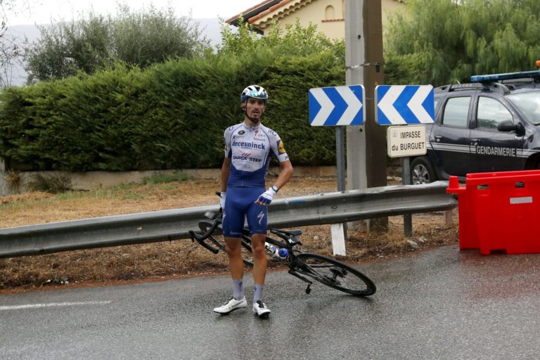 Francúzsky jazdec Julian Alaphilippe po páde na 1. etape Tour de France 2020. 29. august 2020 Foto: SITA/AP