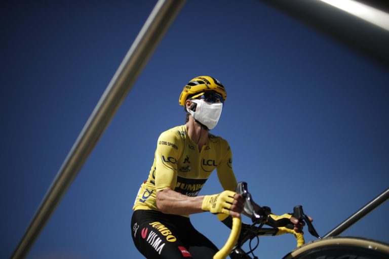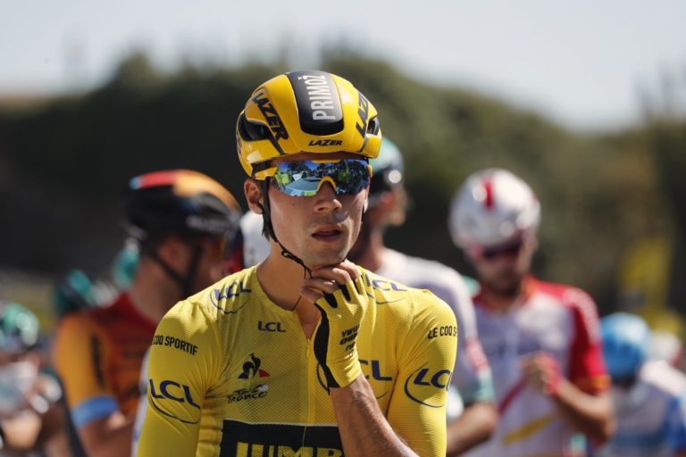Primož Roglič v žltom drese lídra pretekov tesne pred štartom 10. etapy Tour de France 2020. 8. september 2020
