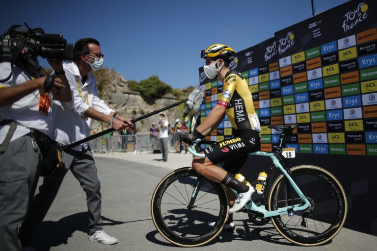 Wout Van Aert odpovedá na otázky novinárov pred 10. etapou Tour de France 2020. 8. september 2020 Foto: SITA/AP