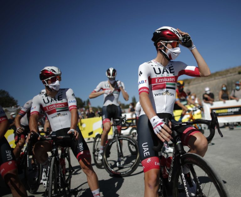 Tadej Pogacar, vpravo, sa pripravuje na štart 10. etapy Tour de France 2020. 8. september 2020 Foto: SITA/AP