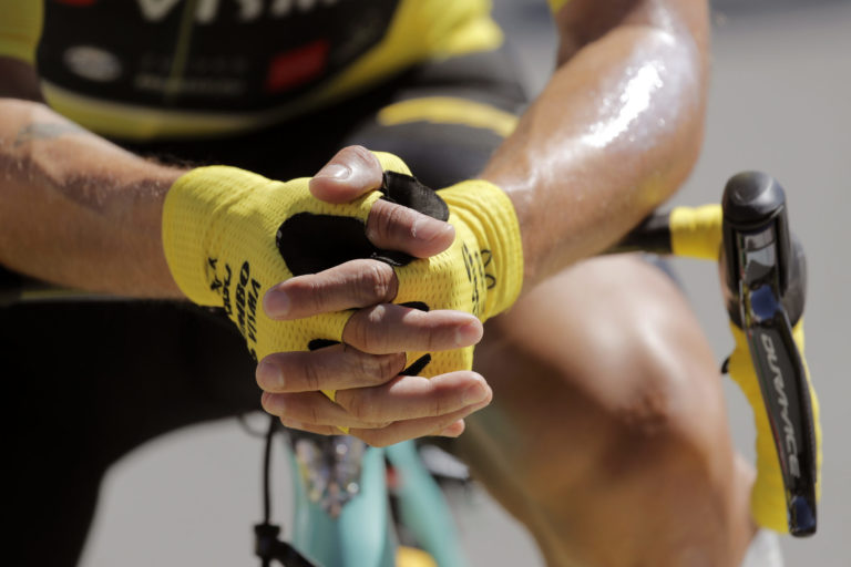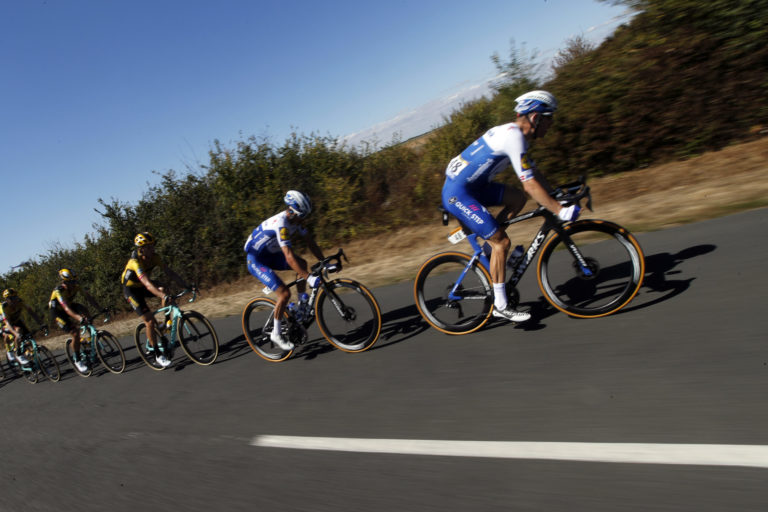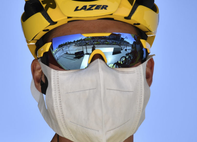 Francúzsky cyklista Romain Bardet pred štartom 11. etapy Tour de France 2020 zo Châtelaillon Plage do Poitiersu (167,5 km). Châtelaillon Plage, 9. september 2020. Foto: Anne Christine Poujoulat/Pool via AP).
