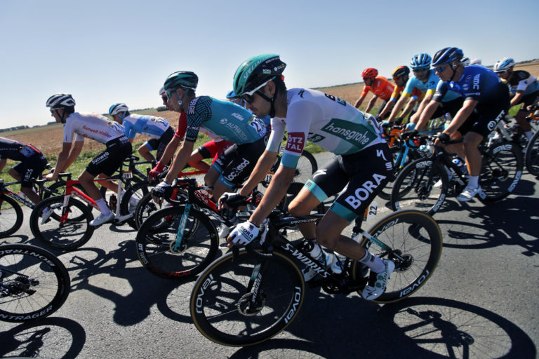 Nemecký cyklista Emanuel Buchmann (Bora-Hansgrohe) počas 11. etapy Tour de France 2020 zo Châtelaillon Plage do Poitiersu. Foto: SITA/AP.
