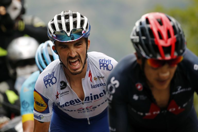 Julian Alaphilippe počas stúpania na 17. etape Tour de France, ktorá meria 170 km a smeruje z Grenoble do Meribel Col de la Loze. 16. september 2020 Foto: SITA/AP