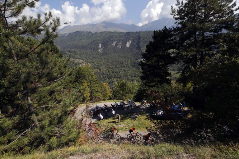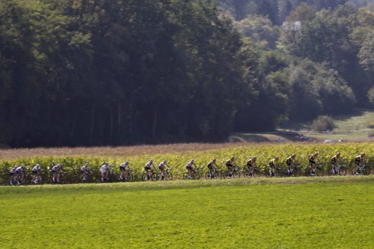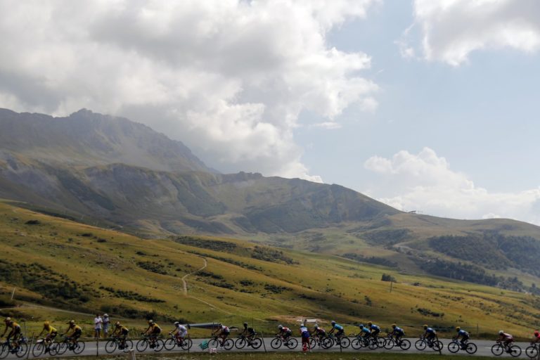 Pelotón počas 17. etapy Tour de France, ktorá meria 170 km a smeruje z Grenoble do Meribel Col de la Loze. 16. september 2020 Foto: SITA/AP