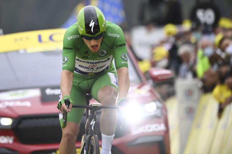 Sam Bennett počas časovky 20. etapy Tour de France 2020, ktorá začala v Lure a končila v La Planche des Belles Filles. 19. september 2020 Foto: SITA/AP