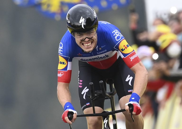 Remi Cavagna počas časovky 20. etapy Tour de France 2020, ktorá začala v Lure a končila v La Planche des Belles Filles. 19. september 2020 Foto: SITA/AP