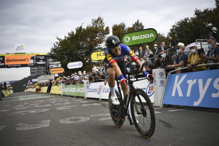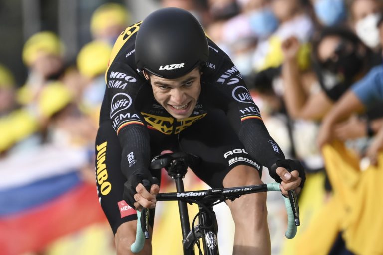 Wout Van Aert počas časovky 20. etapy Tour de France 2020, ktorá začala v Lure a končila v La Planche des Belles Filles. 19. september 2020 Foto: SITA/AP