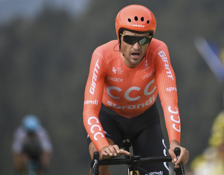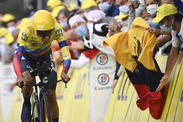 Daniel Felipe Martinez počas časovky 20. etapy Tour de France 2020, ktorá začala v Lure a končila v La Planche des Belles Filles. 19. september 2020 Foto: SITA/AP