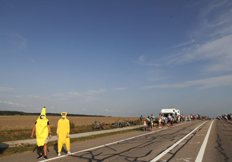 Diváci počas záverečnej 21. etapy Tour de France 2020 so štartom v Mantes la Jolie a cieľom na Elyzejských poliach v Paríži. Foto: SITA/AP.