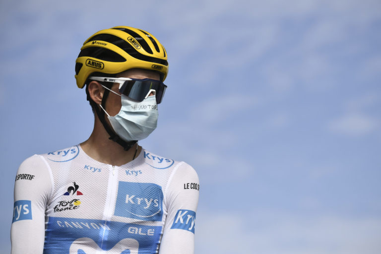 Španiel Enric Mas na štarte záverečnej 21. etapy Tour de France 2020. Foto: Marco Bertorello/Pool via AP.