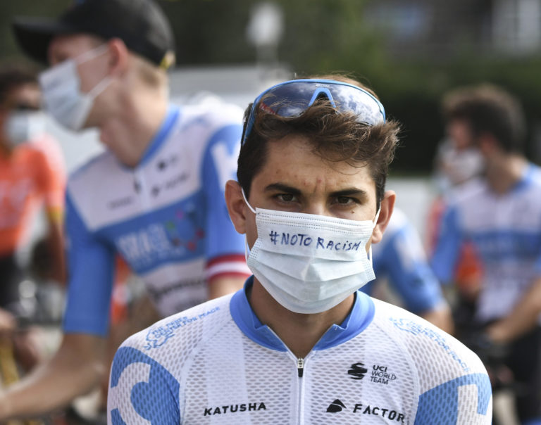 Izraelčan Guy Niv na štarte záverečnej 21. etapy Tour de France 2020. Foto: Marco Bertorello/Pool via AP.