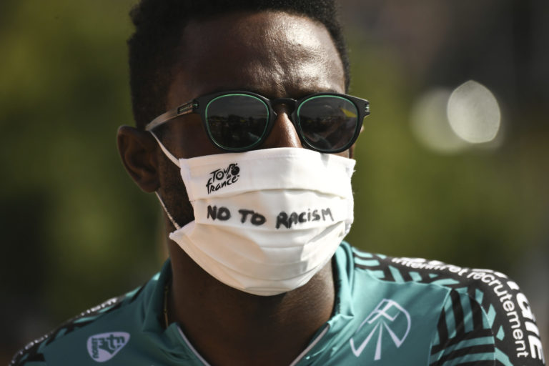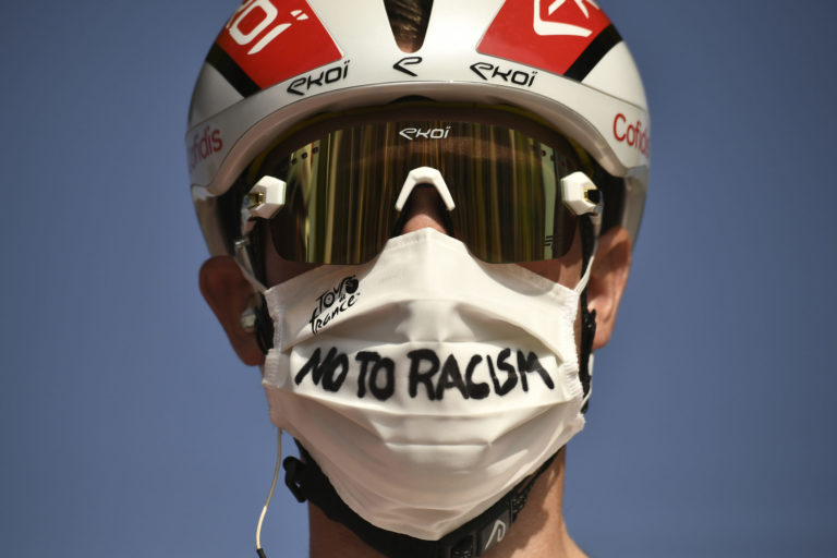 Francúz Kevin Reza na štarte záverečnej 21. etapy Tour de France 2020. Foto: Marco Bertorello/Pool via AP.