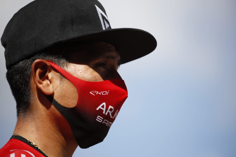 Kolumbijčan Nairo Quintana pred štartom 3. etapy Tour de France 2020 z Nice do Sisteron. Nice, 31. august 2020. Foto: Sebastien Nogier, Pool via AP.