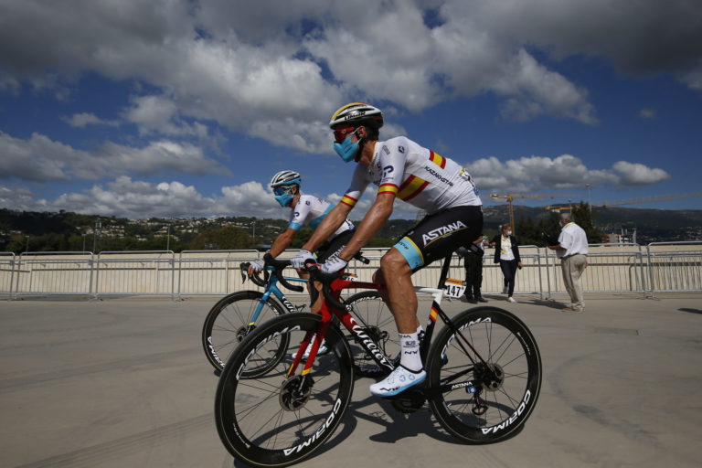 Španiel Mikel Landa pred štartom 3. etapy Tour de France 2020 z Nice do Sisteron. Nice, 31. august 2020. Foto: Sebastien Nogier, Pool via AP.
