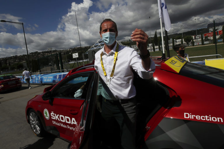 Riaditeľ pretekov Christian Prudhomme počas tretej etapy Tour de France 2020 z Nice do Sisteronu. Foto: SITA/AP.
